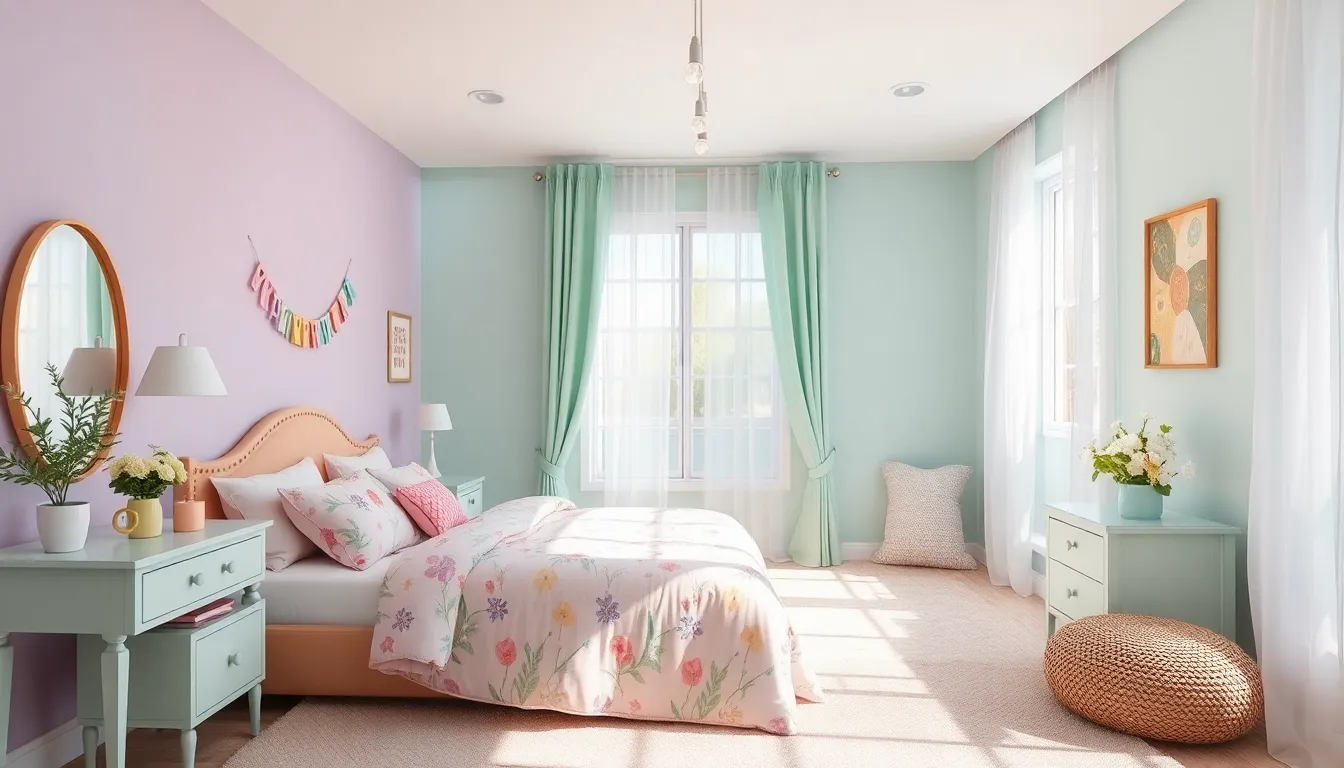Pastel colors create a soft and soothing atmosphere. Shades like lavender, mint green, and blush pink evoke a calming environment. Girls often gravitate toward these gentle hues for a serene retreat. Light colors can boost creativity and promote relaxation. Combining pastels with fun accents, like whimsical wallpapers or colorful decor, enhances visual interest. Layering different pastel tones together offers depth, making the space feel cohesive. This tranquil palette invites a dreamlike quality that perfectly suits a personal sanctuary.
